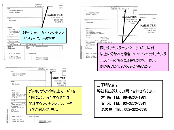 | D/R上へのブッキングナンバー記載のお願い |